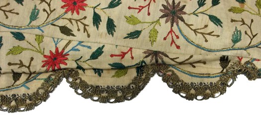 Neck line detail – a scalloped edge and no buttons or evidence of closure