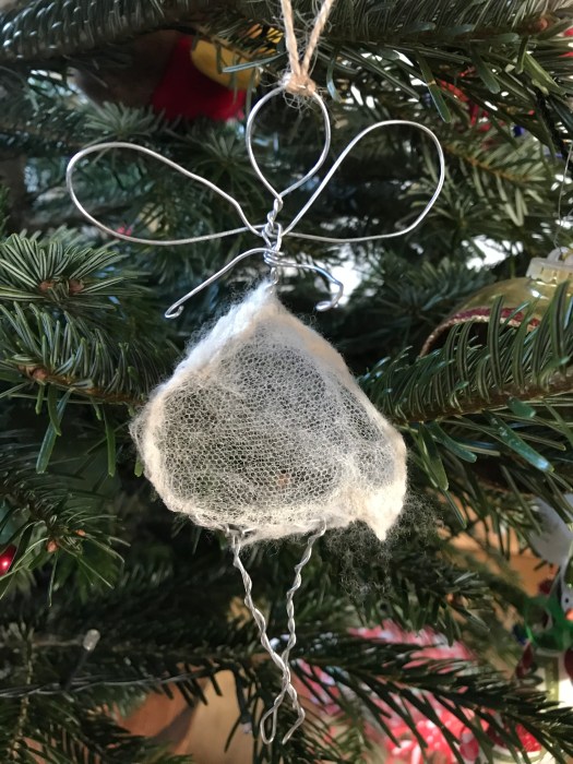 Having fun making a Christmas Fairy from wire and wet felted wool on tulle … something to develop I think!