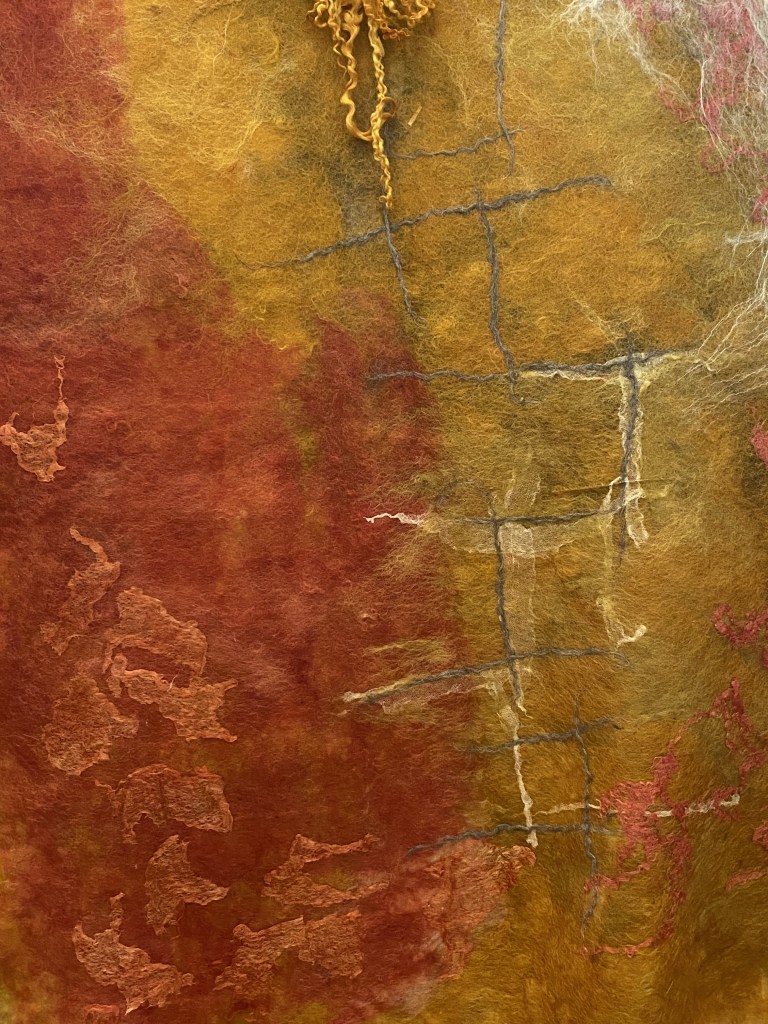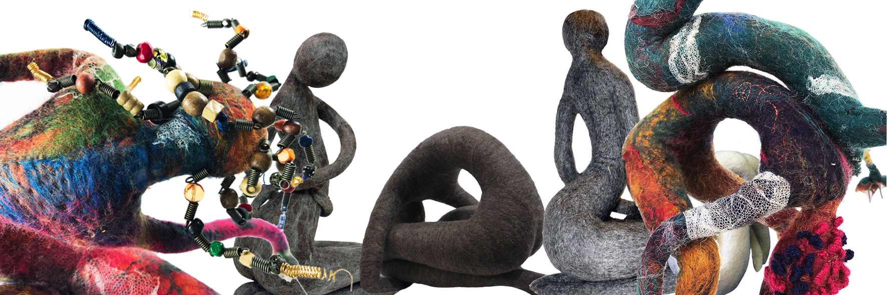 Molly is a studio based textile artist whose creativity is inspired by her Shropshire home and the movement and emotive posture of the human form. Her sculptures reflect her thoughts and feelings as individual personality and form materialise from physical and mental effort. Natural dyes, found wood, metal objects, and ceramic are sometimes included in both her 2D and 3D work.