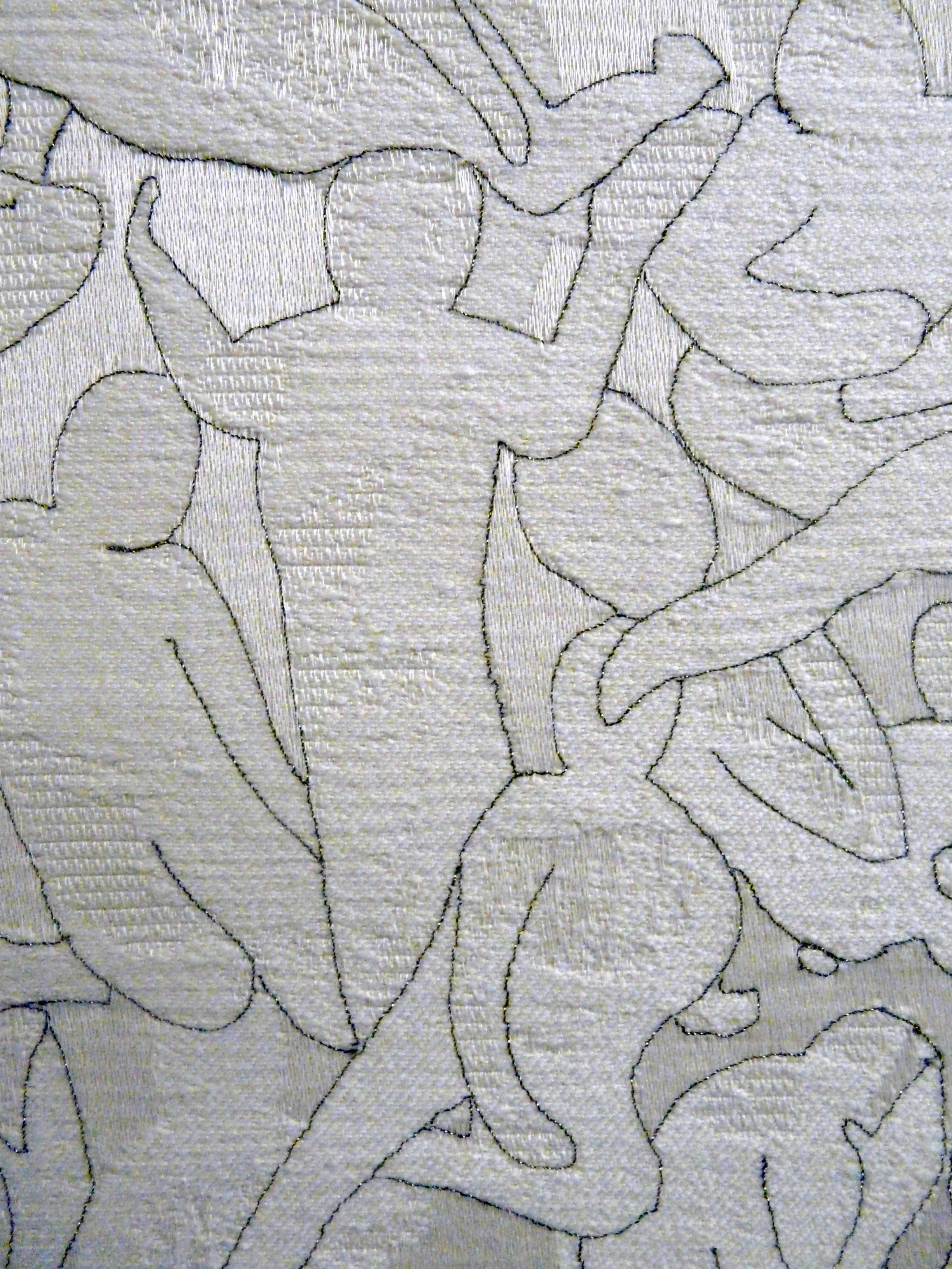My course tutor, at the time, was Sarah Braddock-Clarke, lecturer at Falmouth University. I went down to Falmouth to transfer my design to a woven fabric. I worked with Ismini Samanidou, technician and MA student at the time, to learn how to use Scotweave and their digital jacquard loom.