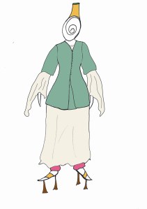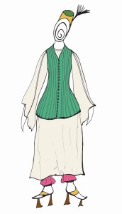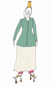 The Ferace – indoor clothing was highly coloured and very eye-catching however when a woman went outside she would cover herself modestly with a ferace. This was a simple overcoat in a dark sombre colour, buttoned to the throat. She would also cover her face with a yashmak.