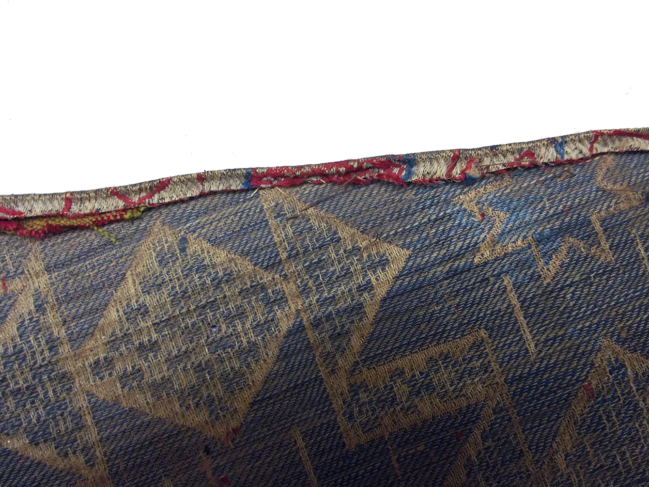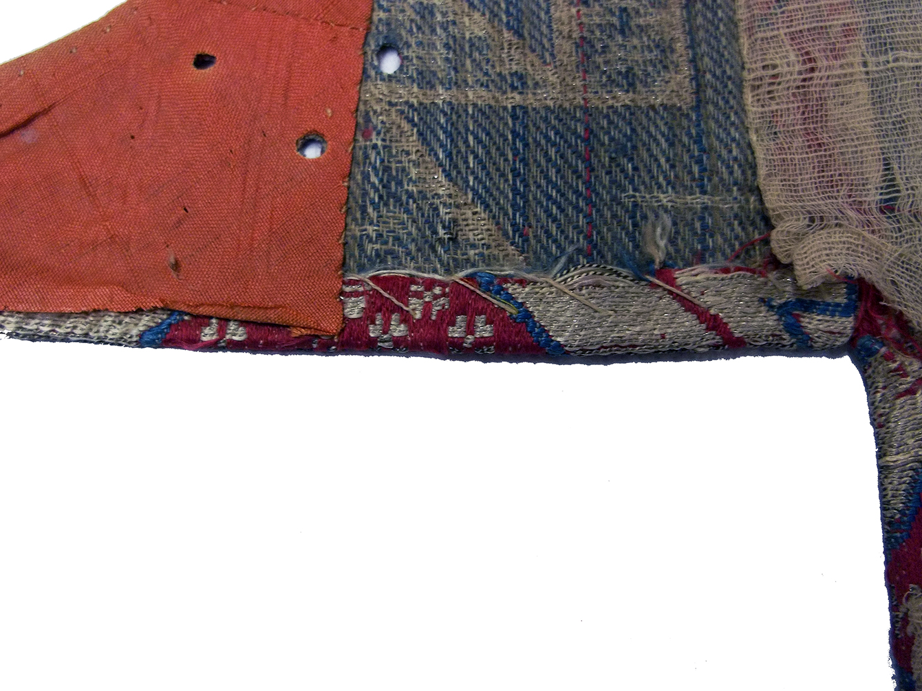 Fabric weave were a Lampas (4:1 satin and 1/3 twill). Fabrics were sumptuously made with silk warps and wefts and included metallic yarn as a brocaded weft. They were woven on looms producing a width of between 66cm and 68.5cm and, because of this width restriction, only the smallest of kaftans could be cut completely within the width – larger body sizes required fabric inserts.